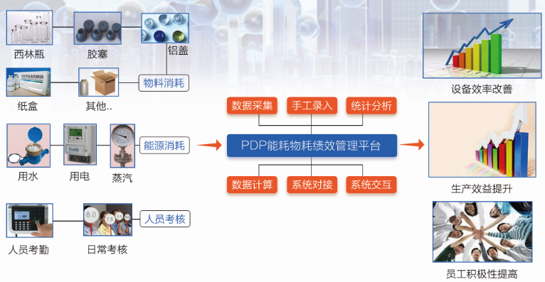 滿足制藥企業績效管理需求、現場實時大數據統計分析能耗物耗,降低能耗物耗成本,提高生產效率、降低生產成本